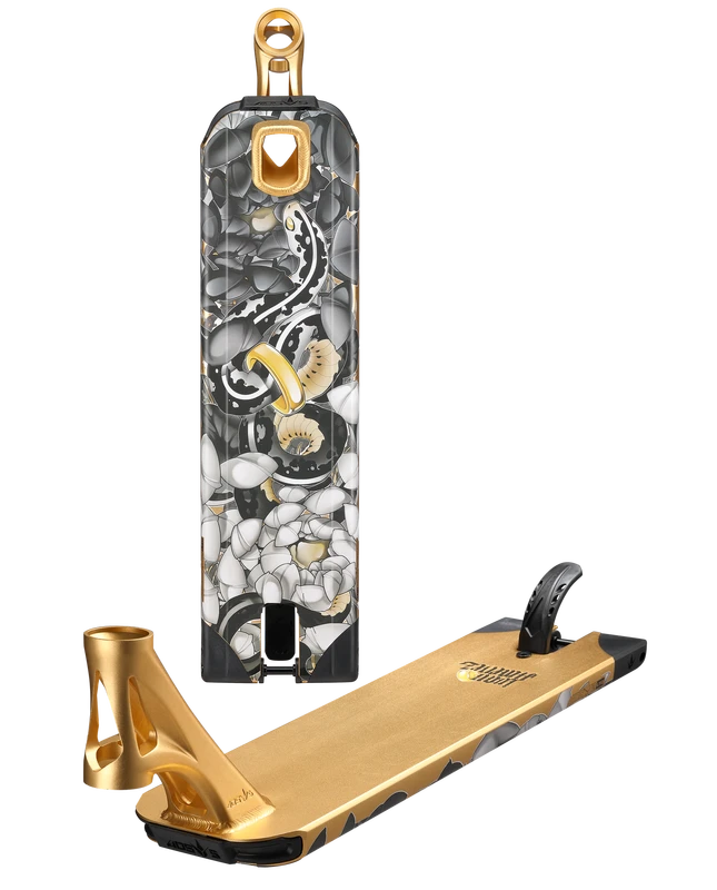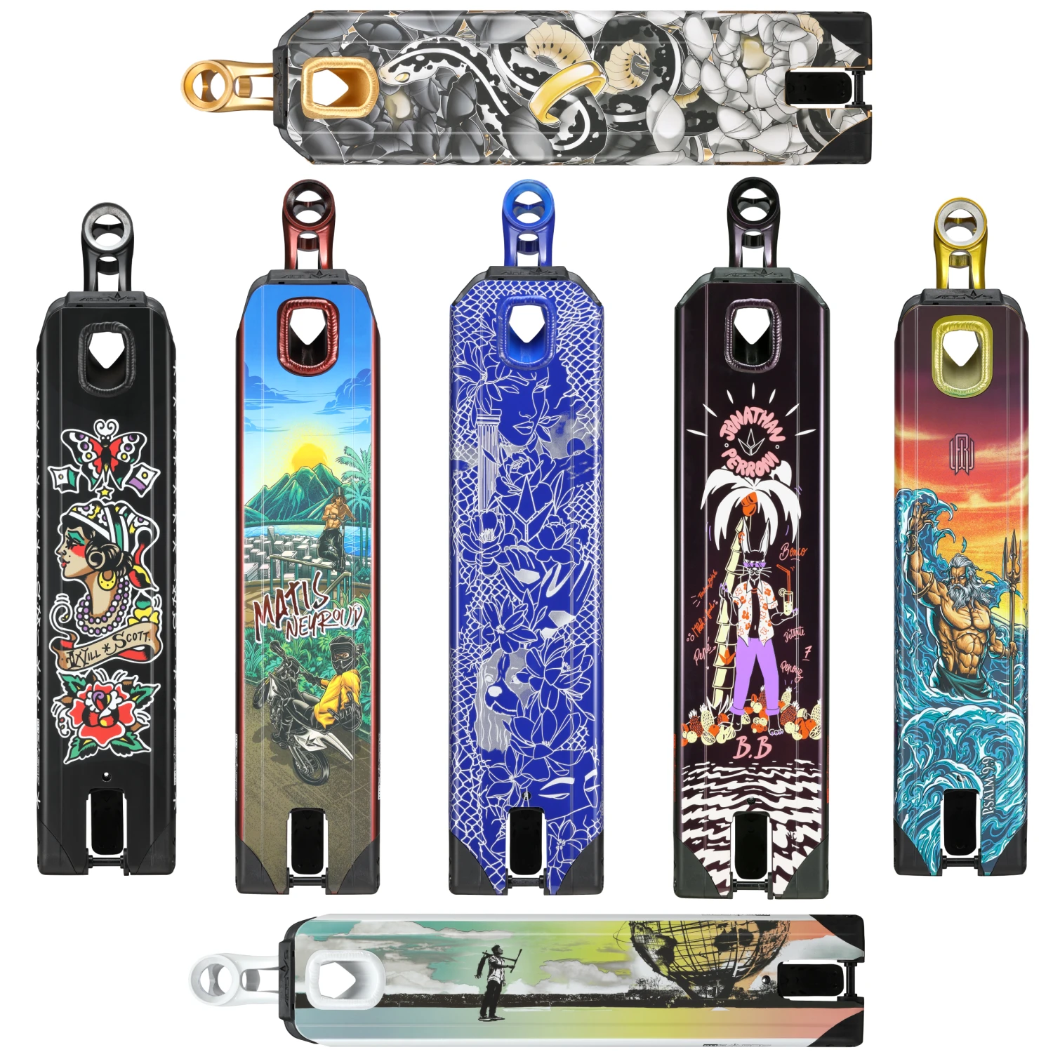 Introducing the LIMITED EDITION Ace of Spades (AOS) – Version Five (V5), the most coveted custom scooter decks in the game. These exclusive additions are a collaboration between renowned pro riders from around the world, featuring custom specifications, graphics, and colorways for each rider. Don’t miss your chance to own a piece of scooter history!