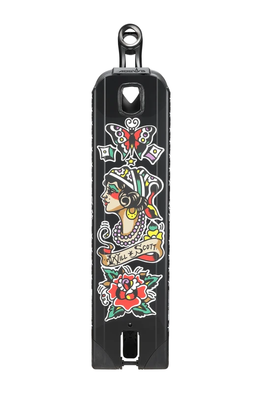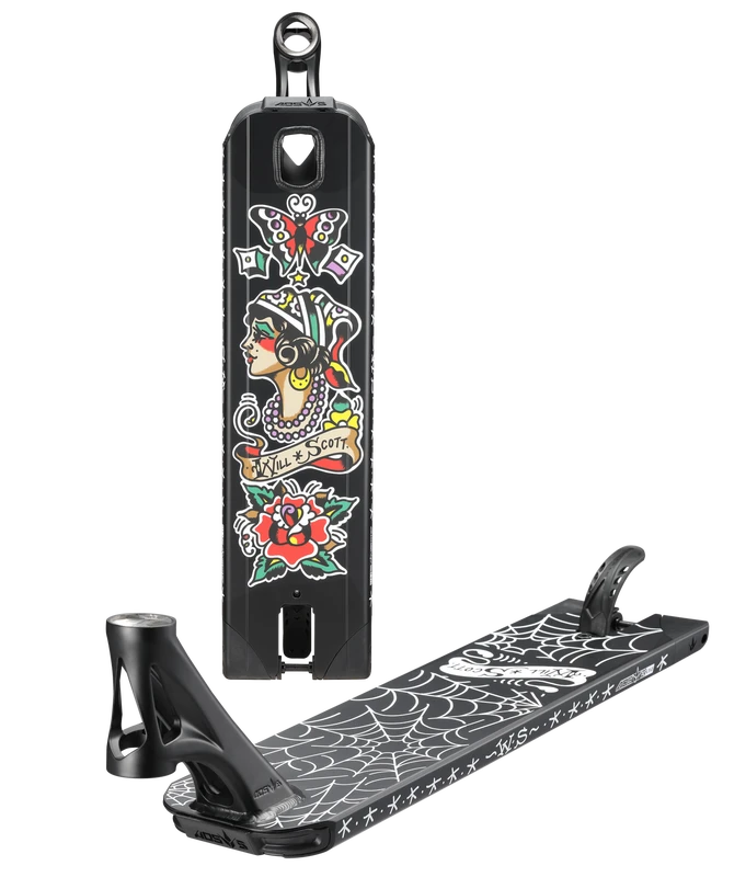 With his deck wrapped in a sleek “Matte Black” finish, Will Scott’s signature deck is designed for urban environments and street riding. The deck showcases an “American Traditional Tattoo” inspired graphic on the bottom, while the top features white webbing and initials for a personalized touch. Experience the style and finesse of Will Scott’s riding with his AOSV5 Limited Edition deck.