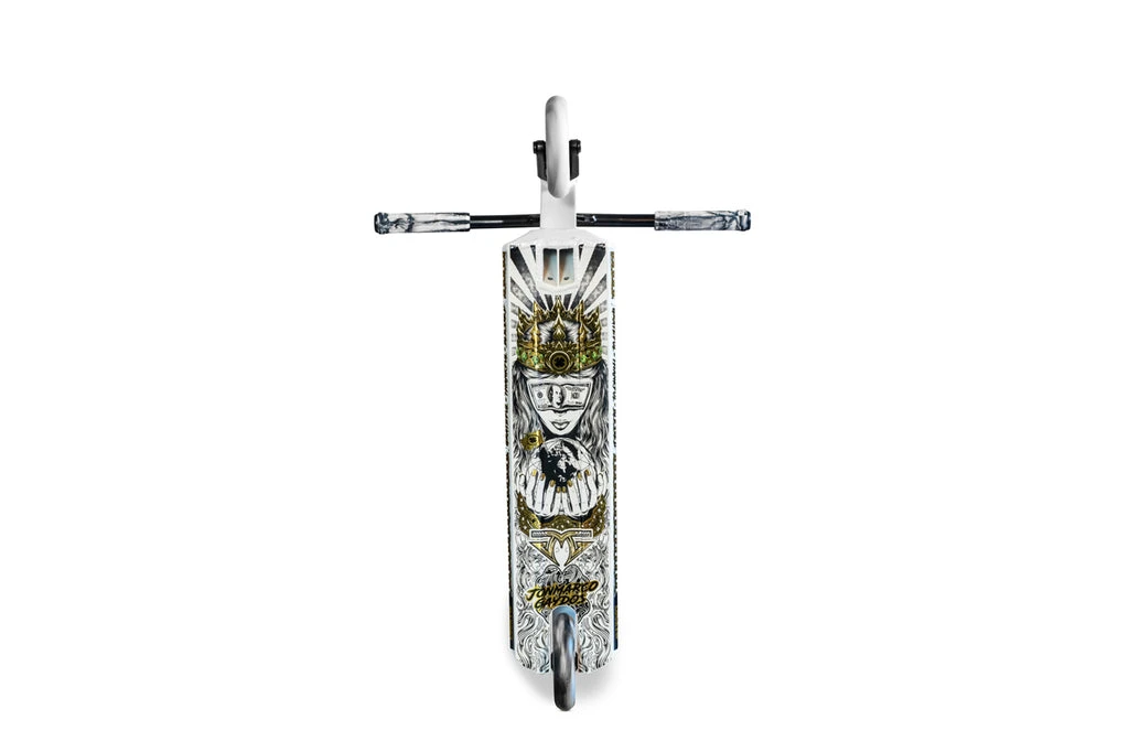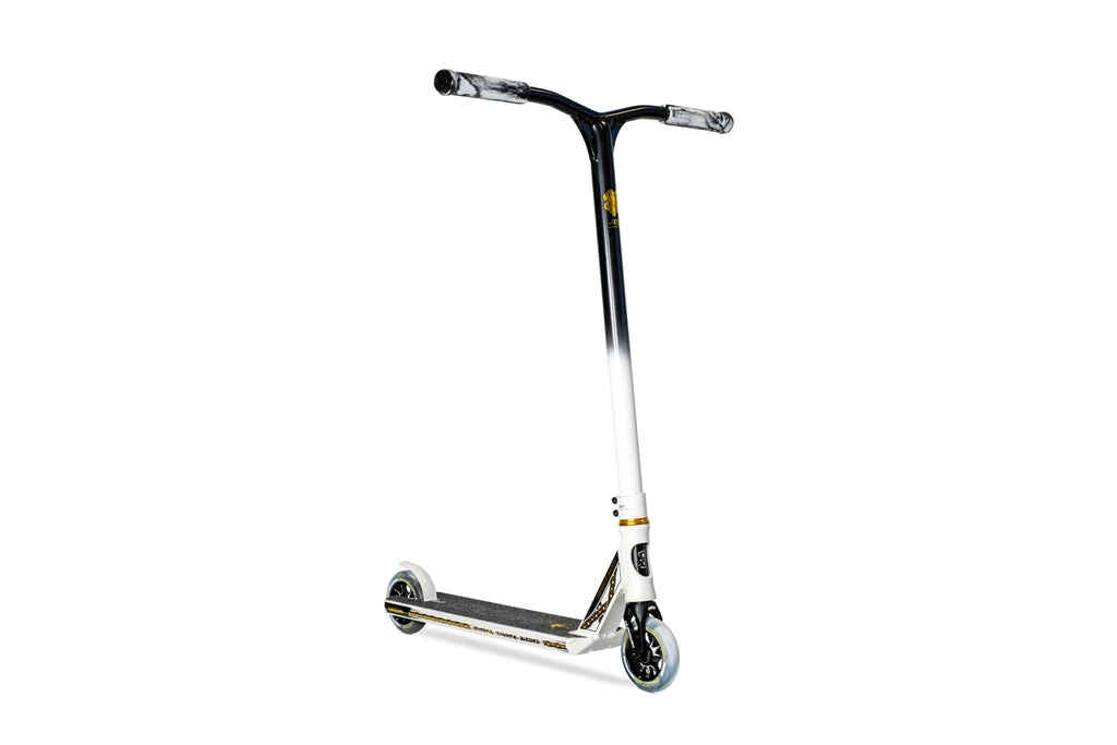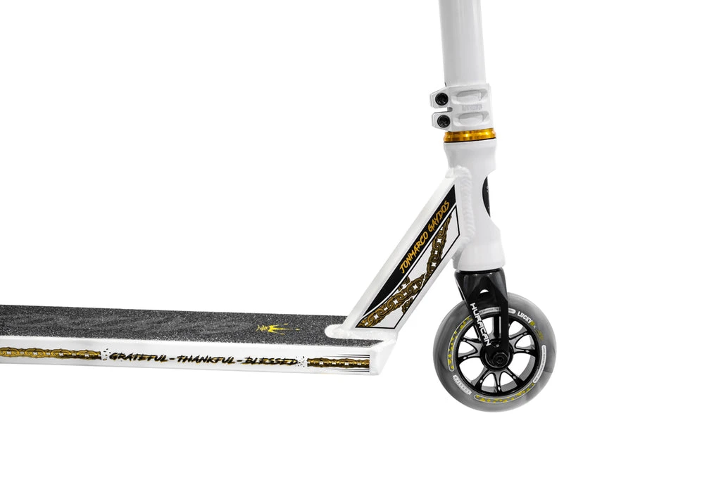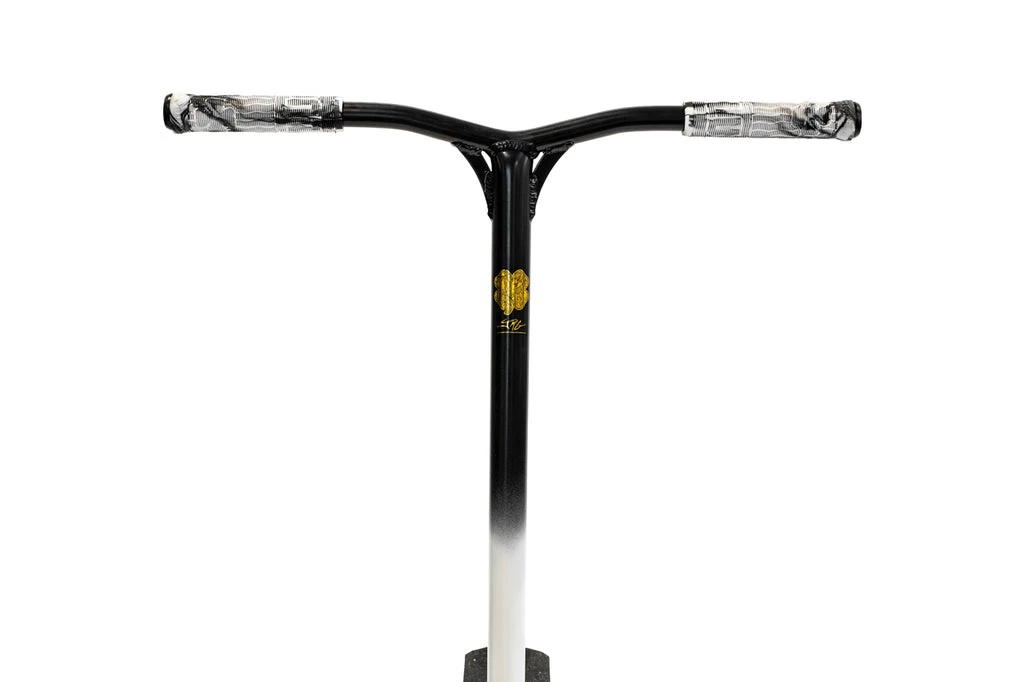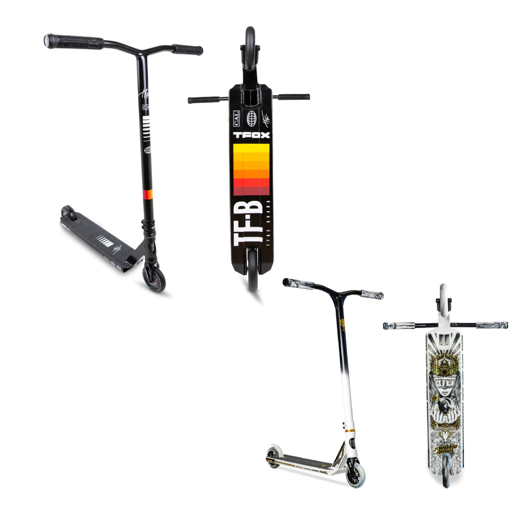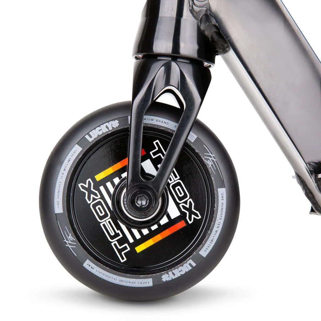 The 2021 TFOXโข Sig Complete uses the same deck as the legendary Prospectโข made from aircraft grade 6061 aluminum that gets hit with a robotic TIG weld for exceptional strength and durability. The deck is 19.5โ (495mm) Long and 4.5โ (114mm) with 4130 Chromoly Kink Bars that are 24โ (610mm) Tall and 23โ Wide (584mm). A Black anodized Huracanโข HIC fork and our Lunar hollow core wheels that ties it all together. The graphics were inspired and designed directly with Tanner Fox to show off his favorite styling and color combos!ย