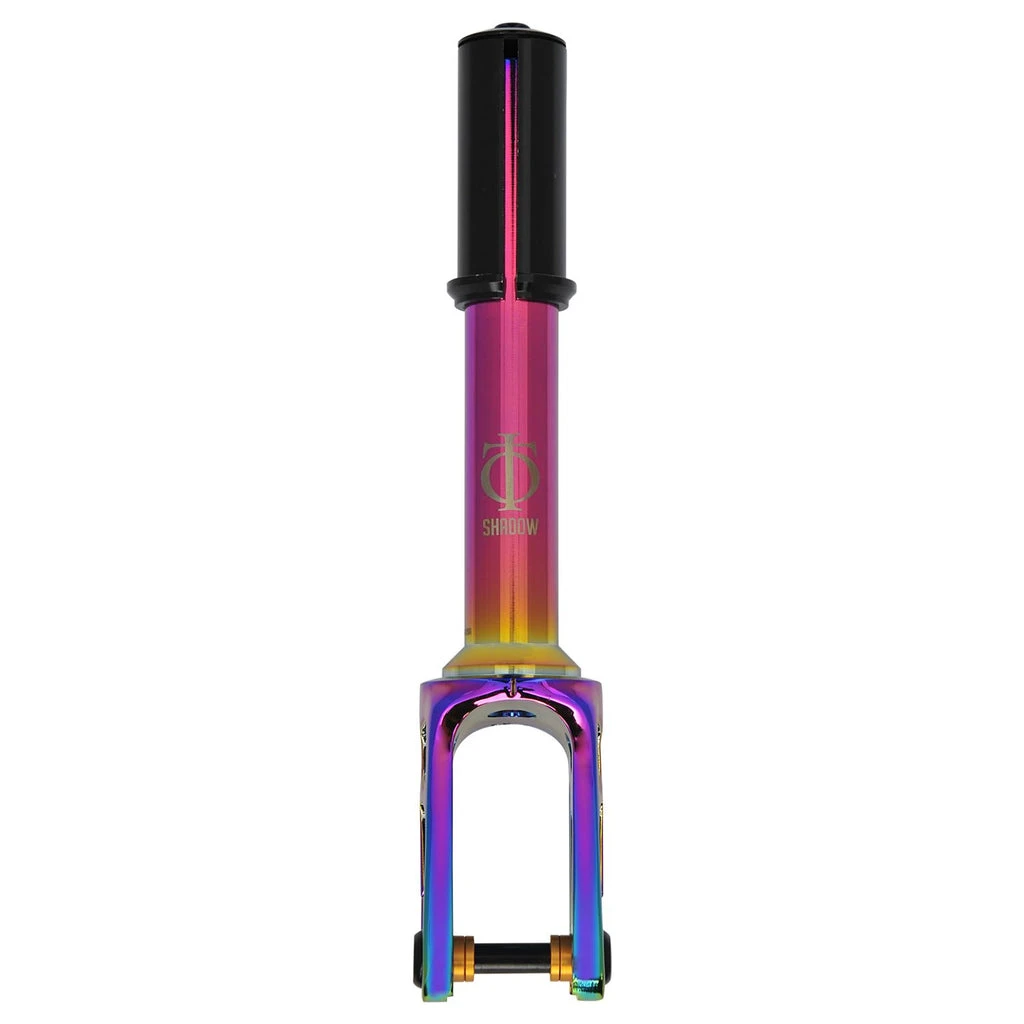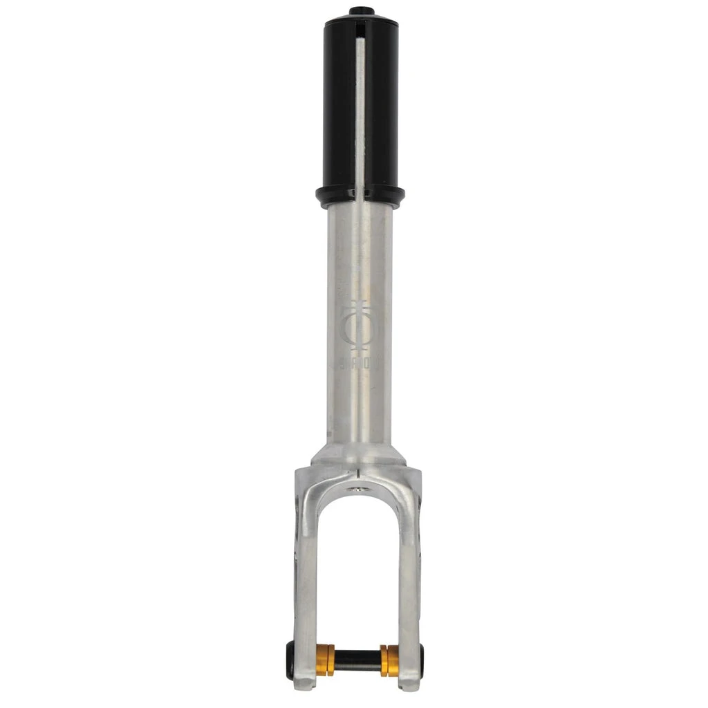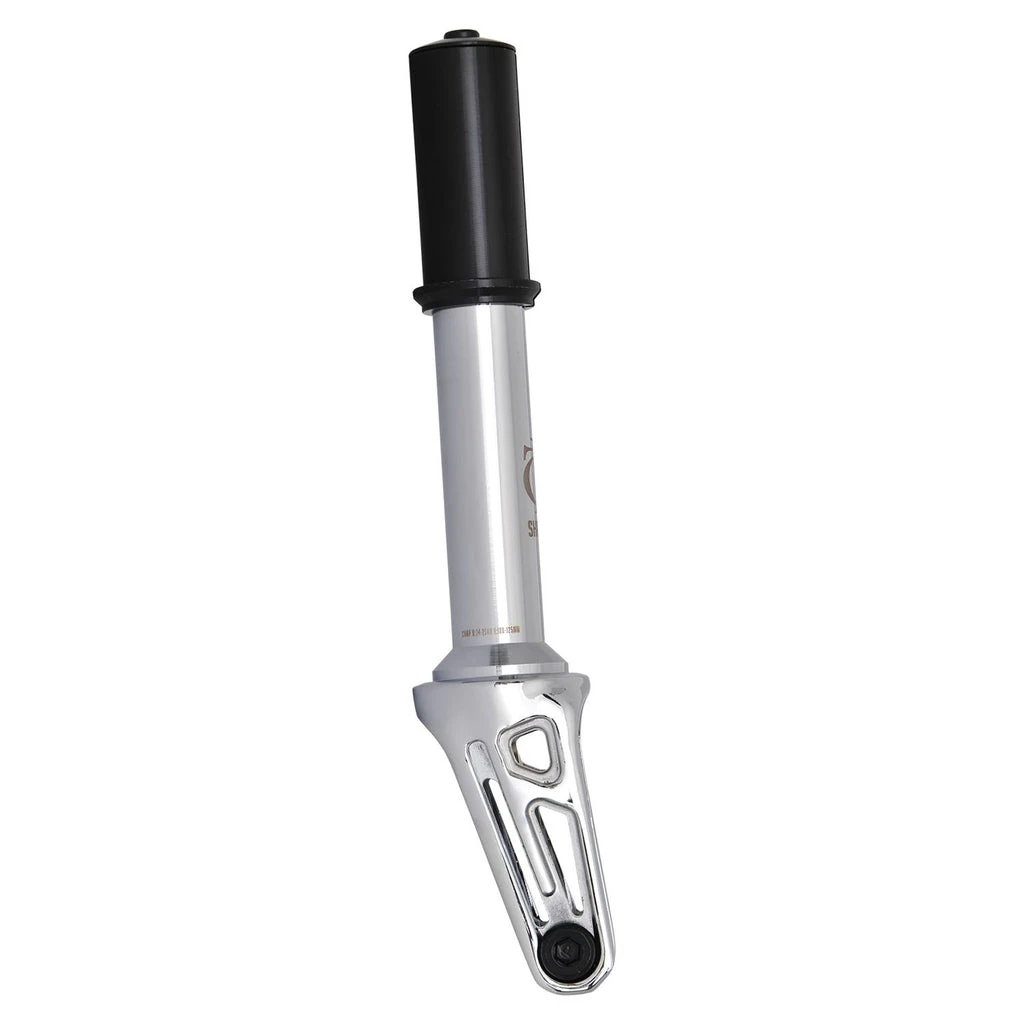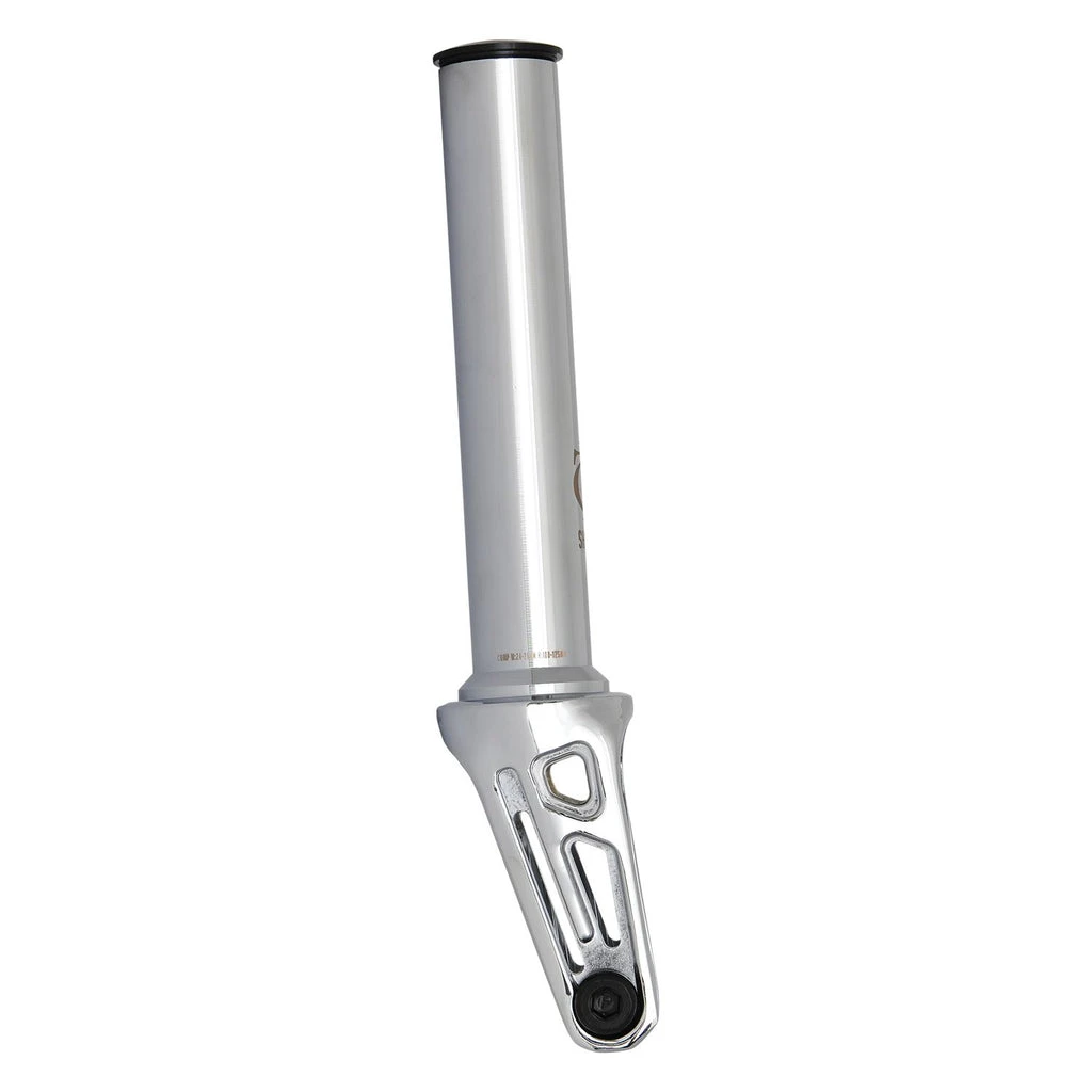 The Shadow fork is one of the most progressive forks on the market. Made from forged 6061 T6 Aluminium, the Shadow fork fits up to 125mm high wheels and a whopping 28mm core with virtually no comprise on weight. With the scooter market changing rapidly, we strongly believe that the fatter core design is on the rise and is here to stay. The fork design is beautifully sculptured and matches seamlessly with your head tube.