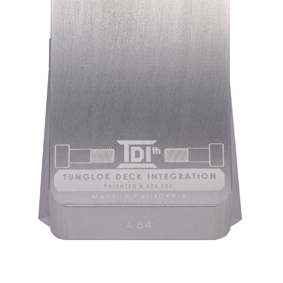 With improved geometry, everything about this neck has been updated. The headtube is now nearly half an inch shorter than it’s predecessor allowing for a full 1.5″ of fork clamping in your SCS with most standard length forks. An 84* headtube angle gives you more handlebar clearance to ride taller and wider bars and increases comfort and pop. The nose blunt area of the OrionTH Neck has been pulled back inside of the Deck Plate to reinforce and protect the areas most commonly impacted during nose blunts, crooks and smith grinds. The tail of the neck that sits inside the Deck now has a slight radius on the bottom to soften the rear corners to allow more flex to reduce the possibility of the neck piercing through the Deck extrusion under heavy impacts. Most notably, the OrionTH Neck features the biggest update in TDI history with the debut of the new TDIth (THreaded) Hardware, creating the tightest fitting, strongest Neck/Deck assembly to date.