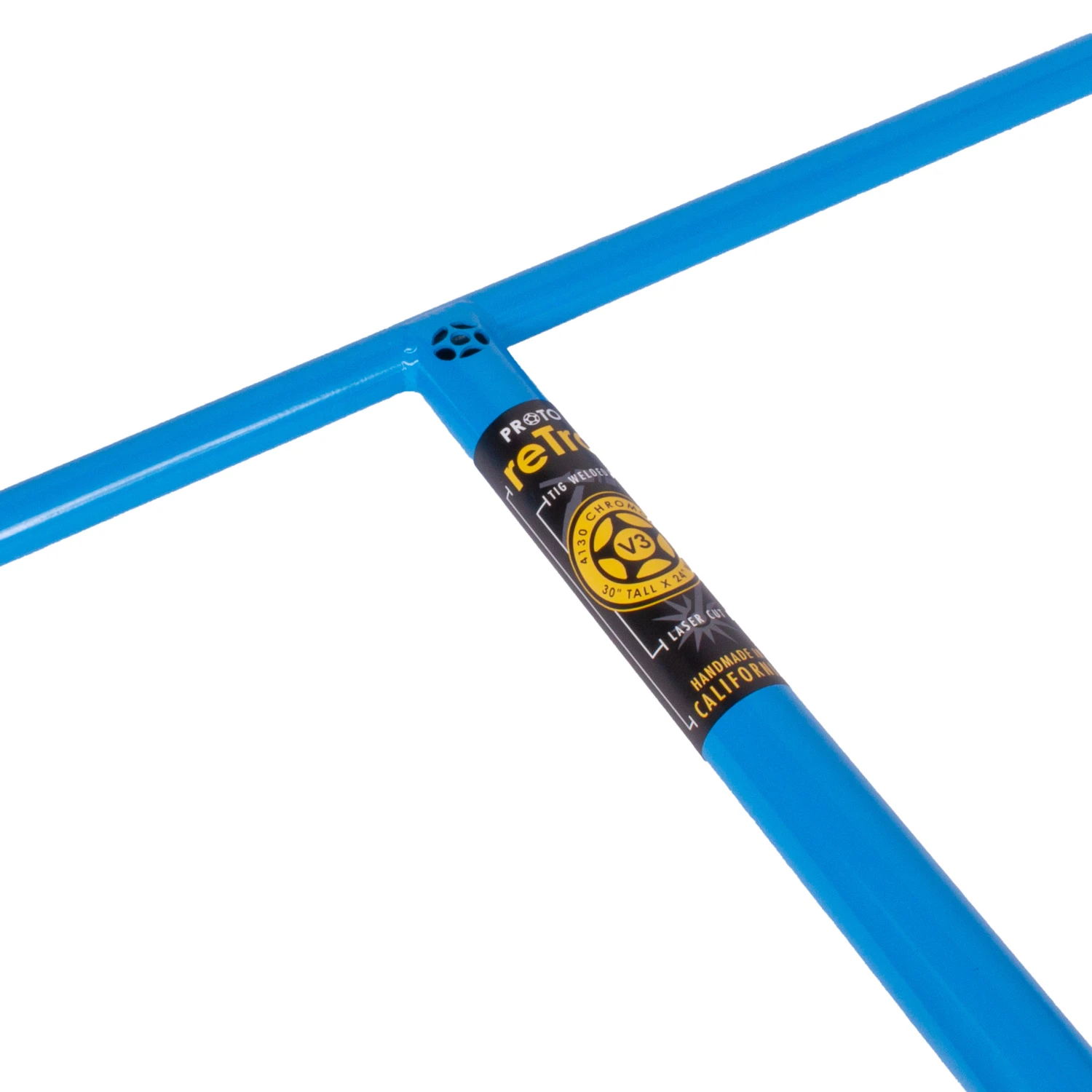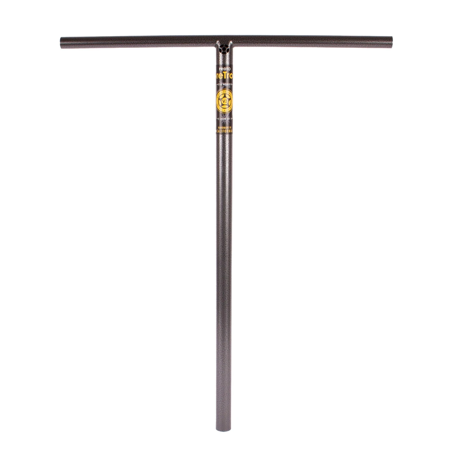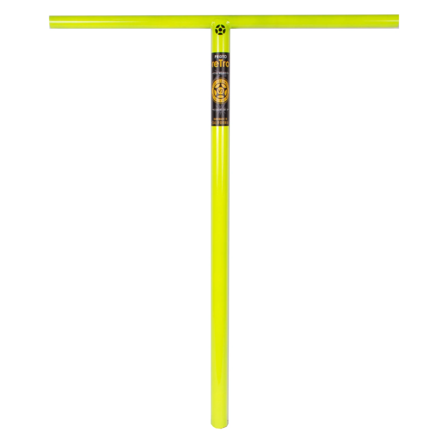 PROTO reTro Lites V3 handlebars come in at 30″ tall x 24″ wide, making it one of the largest “T” bars in the industry. Not only did the PROTO retro V3 increase substantially in width and height from the V2, it also increased the thickness of the 4130 chromoly tubing used for the crossbar and the steering column to increase strength. These reTro’s come with a flat black powder coat. Complete with a laser cut PROTO logo. ATTENTION: SCS COMPATIBLE ONLY!