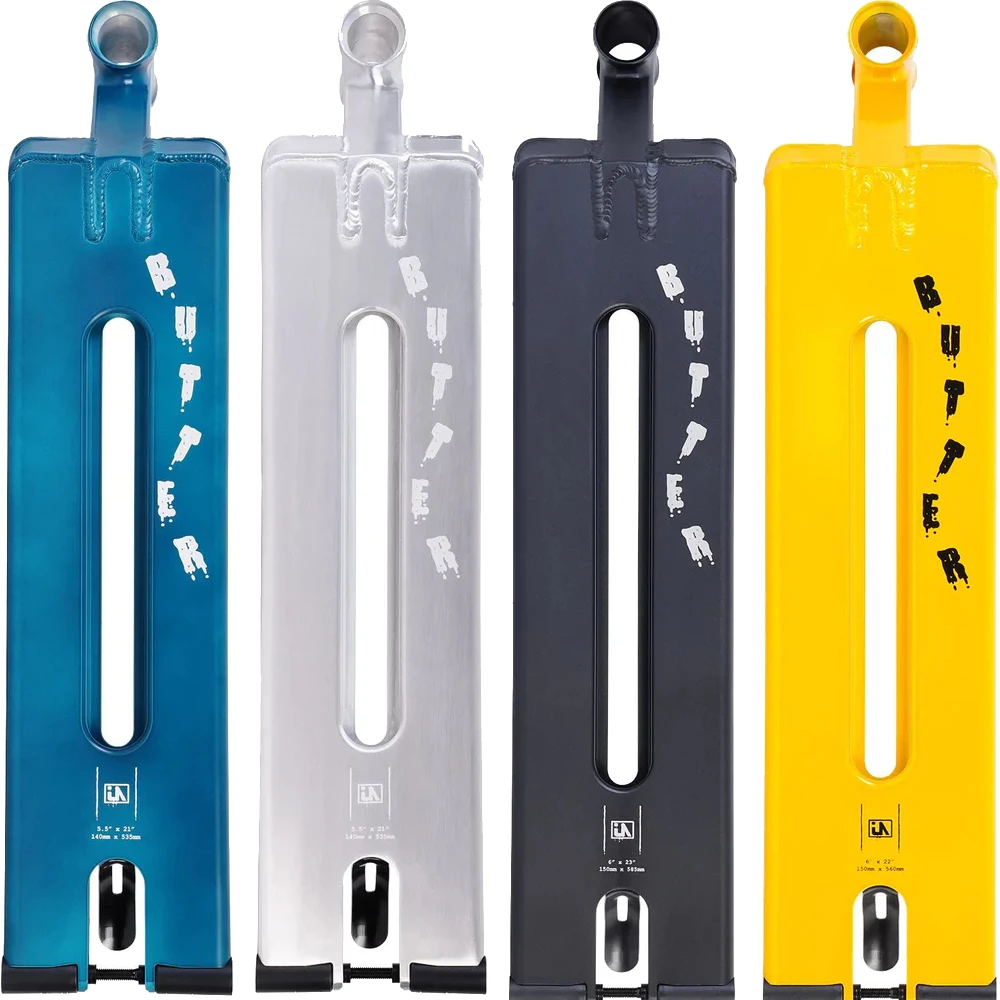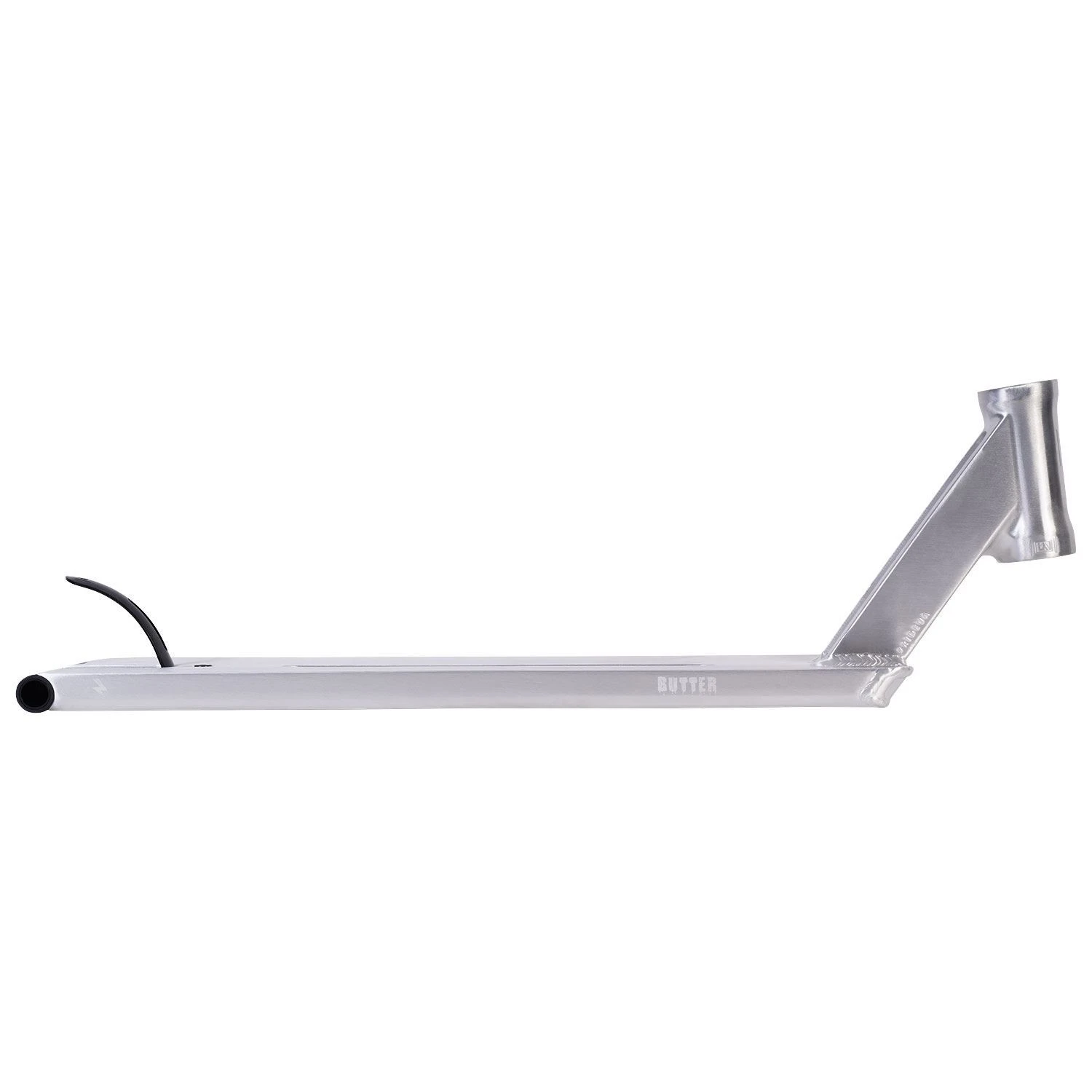 The Butter Deck boasts a super strong forged head tube and a 83-degree headtube angle, ensuring optimal strength and control. Its low profile full flat bottom allows you to connect with the rail like never before, while the radius bottom edges effortlessly glide across any surface.