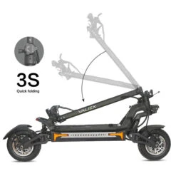 The Valiex G is a high performance electric scooter that is capable of going up to 28 miles per hour. In terms of acceleration, this scooter is absolutely insane. Its 600 Watt motor puts out a quick acceleration to get you up to speed and up most hills and inclines.